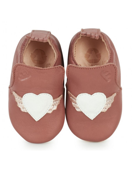 Chaussons en cuir pour bébé, idéal pour finir les petites tenues, tiens bien à la cheville et permet d'éviter les pieds nus... Cette version comprend également un patin souple anti dérapant facilitant l'apprentissage de la marche.