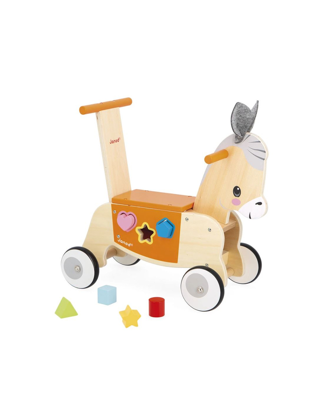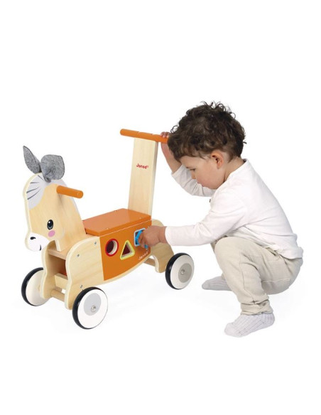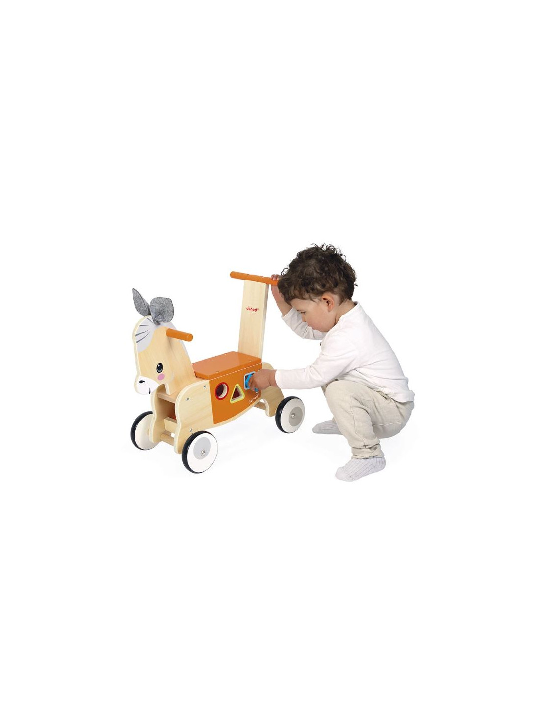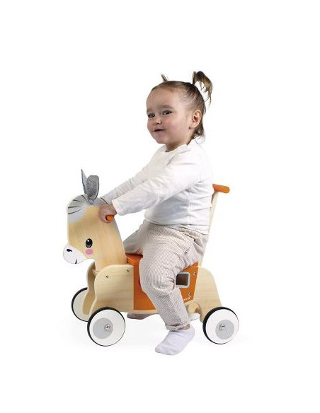 Petit âne a vraiment hâte de découvrir le monde, et bébé aussi ! Avec ce porteur âne en bois, en route pour de nouvelles aventures, dès 12 mois.