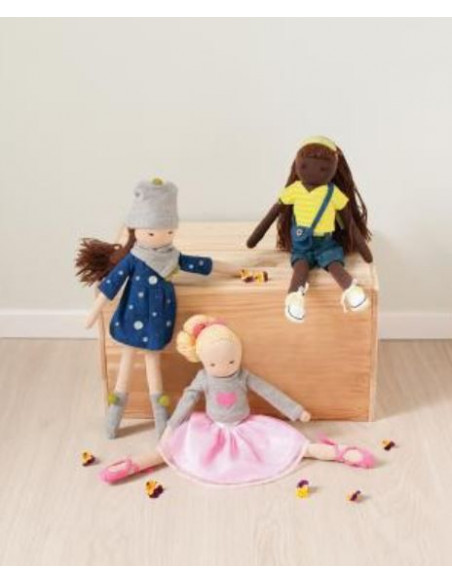 Grande poupée à habiller et à coiffer de mille façons! Ethique et fait main, en matières 100% naturelles non toxiques. Taille 40cm.