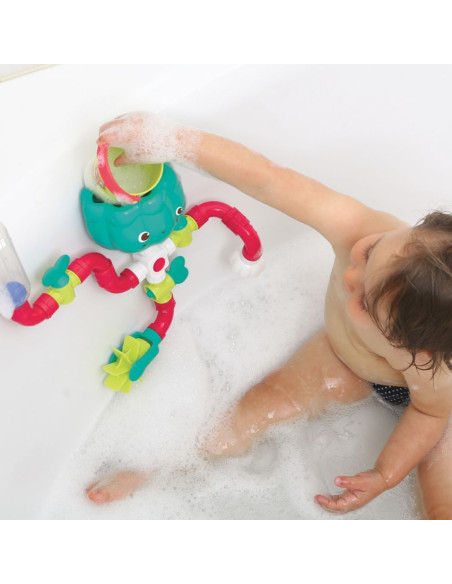 À l’aide des ventouses, il est facile de fixer le circuit sur les parois de la baignoire ou sur le carrelage. Solide et pratique il peut aussi se détacher pour devenir un jouet indépendant.