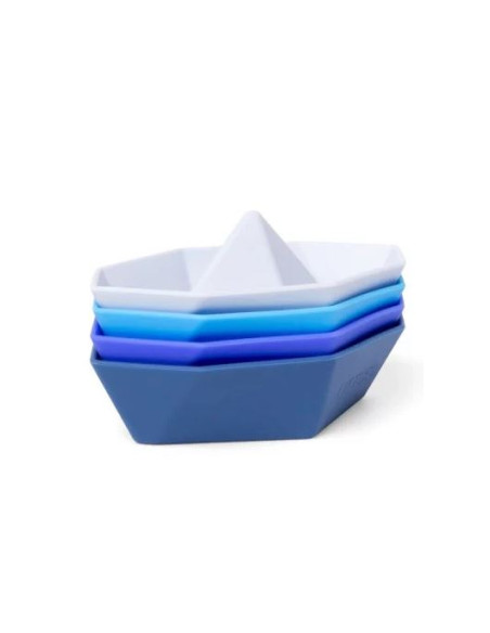 4 adorables bateaux en silicone dans différents teintes de bleus pour amuser votre enfant lors du bain.