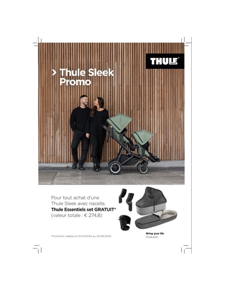 A l'achat d'une Thule Sleek et de sa nacelle entre le 01/05/2024 et le 30/06/2024, vous recevrez en cadeau :