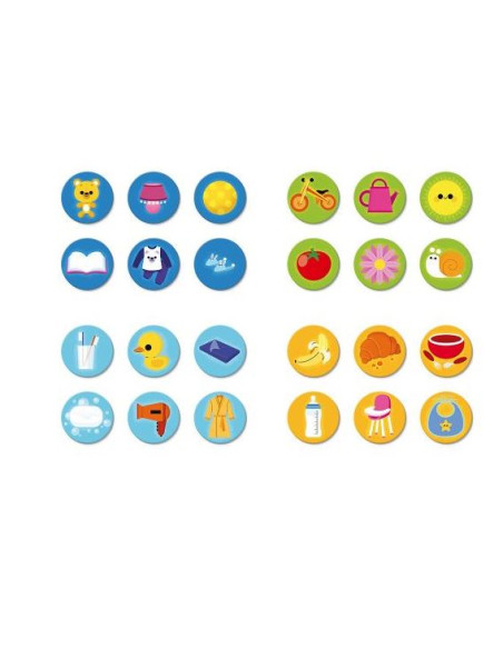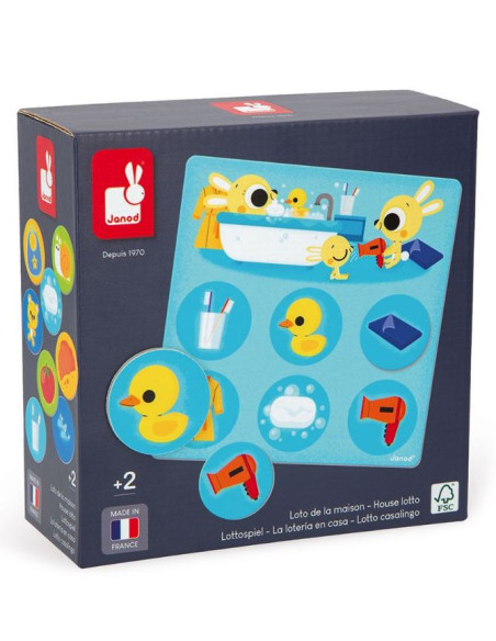 Bingo, c’est le moment d’apprendre en s’amusant ! Embarquez pour une aventure d’apprentissage ludique pour les tout-petits avec ce loto composé de 4 planches et 24 jetons. Dès l’âge de 2 ans, les enfants découvrent le monde des animaux domestiques ainsi que des pièces de la maison (cuisine, chambre, salle de bain et jardin). Chaque planche de jeu représente une pièce de la maison, avec une scène captivante reprenant tous les éléments recherchés. Les enfants peuvent ainsi jouer à un jeu de cherche et trouve tout en jouant au loto. Ils développent leur langage et leur capacité d’observation. Ils apprennent, ils grandissent, et surtout, ils s’amusent ! Les grosses pièces, adaptées aux petites mains, permettent à tous les enfants de participer et de s’amuser ensemble, jusqu'à 4 joueurs. Ce loto des animaux fait partie de notre gamme de jeux éducatifs créée pour accompagner les enfants à grandir en s'amusant. Ce jeu de société est fabriqué en France avec des encres végétales et du carton FSC™.
