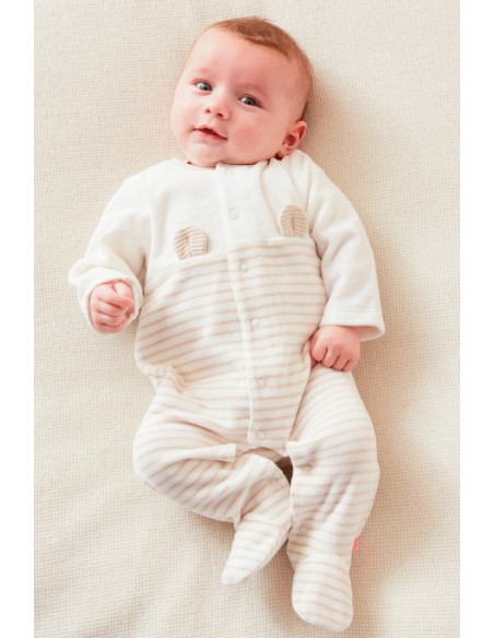 Pyjama Dors-bien en velours - Rayé écru/greige 1M