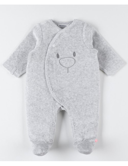 Chaud et tout doux, le pyjama dors-bien en velours gris chiné est l'un de nos coups de coeur pour bébé.