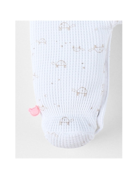 Ce doux pyjama en jersey gaufré, orné d'une multitude de délicates tortues imprimées, est un véritable enchantement pour les petits avanturiers, qu'ils soient filles ou garçons.
