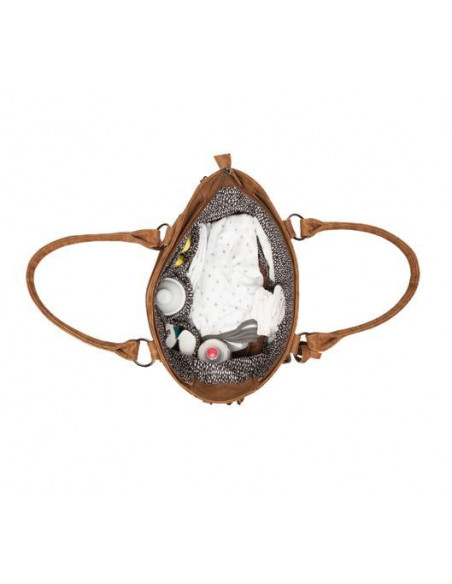 Intérieur: un grand compartiment zippé, muni d'une poche zippée et de 5 petits compartiments, pratiques pour le biberon et les affaires de bébé mais aussi pour les affaires de maman.