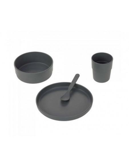 L’ensemble est composé d’une assiette, d’un bol, d’une tasse et d’une cuillère.