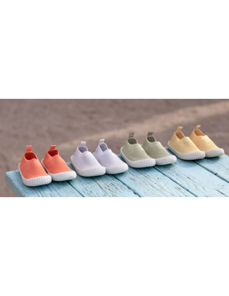Le matériau du dessus est respirant, élastique et sèche rapidement, et protège les petits pieds sensibles des piqûres d’insectes, de petits cailloux ou du sable brûlant en été.