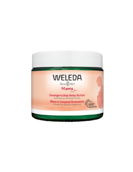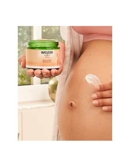 Le Beurre Corporel Grossesse de Weleda préserve la souplesse de la peau et réduit efficacement le risque de vergetures.