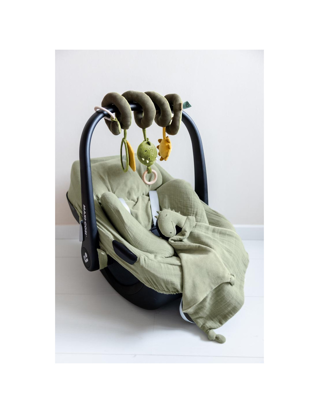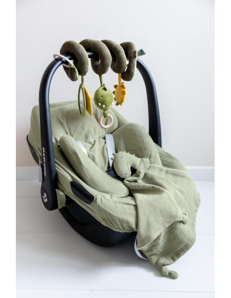 Avec sa flopée d’éléments ludiques, cette spirale d’activités fait sourire tous les petits et s’enroule joliment autour du porte-bébé ou du parc.