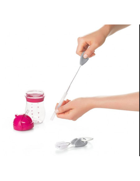 La longue brosse centrale est parfaite pour nettoyer les gobelets avec paille et les gobelets ordinaires de votre enfant.