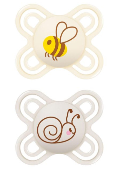 Ici, une sucette bleue avec un ours, l'autre sucette grise avec un éléphant.