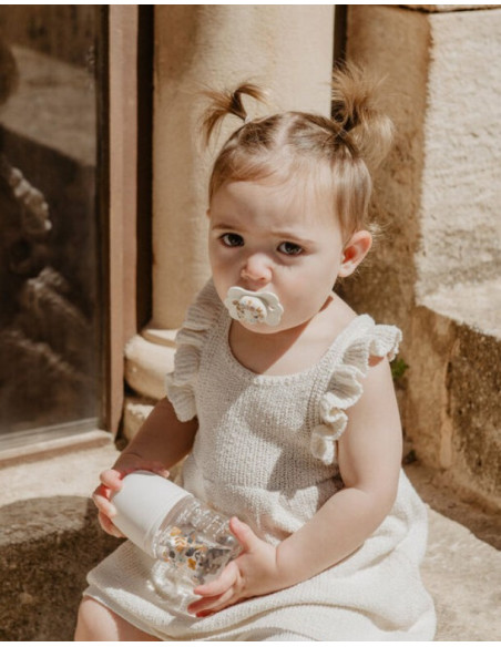 • Sans anneau. Procure de l'autonomie, car sa forme et sa taille sont conçues pour que le bébé puisse la mettre et l'enlever seul.