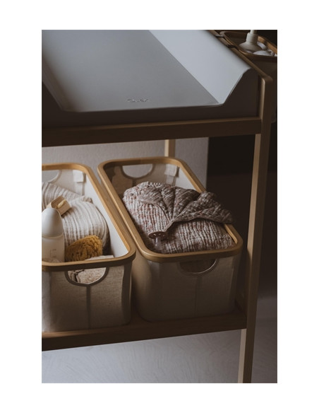 Panier de rangement pour table à langer XL - Beige/Bord Bois