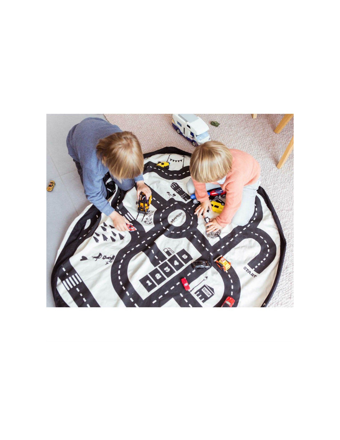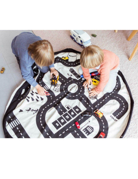 Tapis de jeux nomade et sac de rangement 2 en 1 ! Le sac Play&Go est une solution amusante, simple et efficace pour le rangements des jouets ! 140 cm de diamètre.