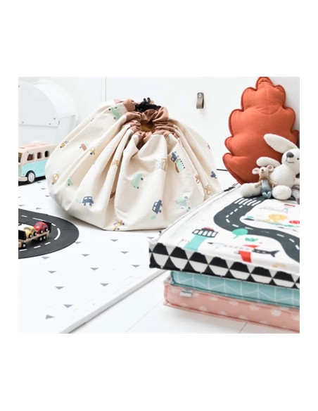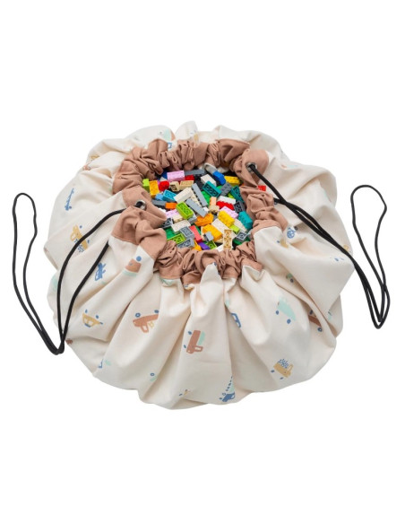 Tapis de jeux nomade et sac de rangement 2 en 1 ! Le sac Play&Go est une solution amusante, simple et efficace pour le rangements des jouets ! 140 cm de diamètre.