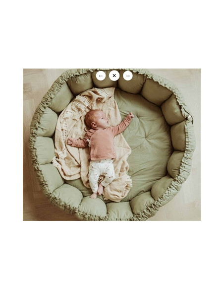 Simple d'utilisation, pour passer du mode tapis de jeux au mode aire de jeux, il suffira de soulever les pétales en tirant doucement sur les cordes puis de placer ces dernières à l'intérieur de la poche.