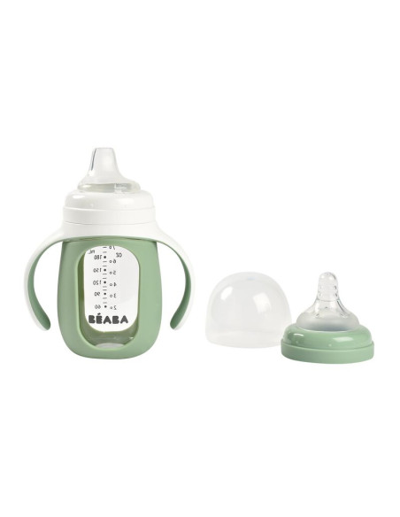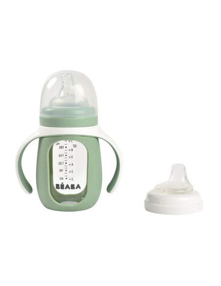 Ce nouveau biberon en verre de haute qualité est muni d'un manchon amovible en silicone qui change de couleur si le liquide à l'intérieur est trop chaud. Il vous garantit un biberon "safe" de toutes substances nocives mais bien résistant en cas de chute.