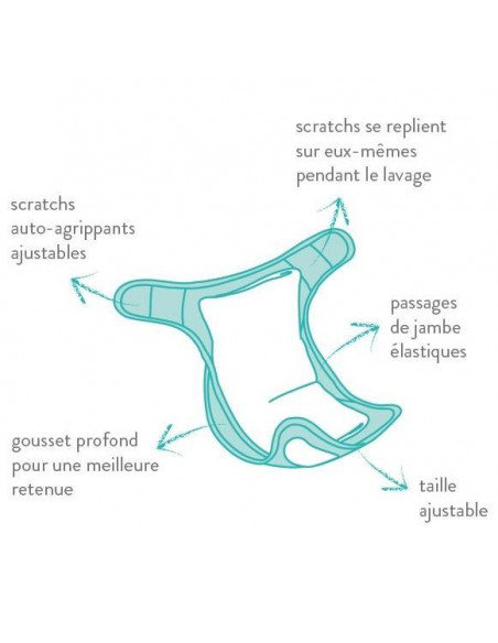 La couche s’adapte facilement, c’est-à-dire qu’elle peut être pliée de plusieurs façons, afin de convenir à toutes les tailles et morphologies.