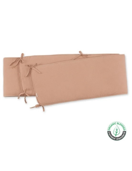 Ce tour de parc réversible en coton bio gaufré va protéger bébé des barreaux. Il s’attache facilement aux barreaux grâce à ses nouettes.