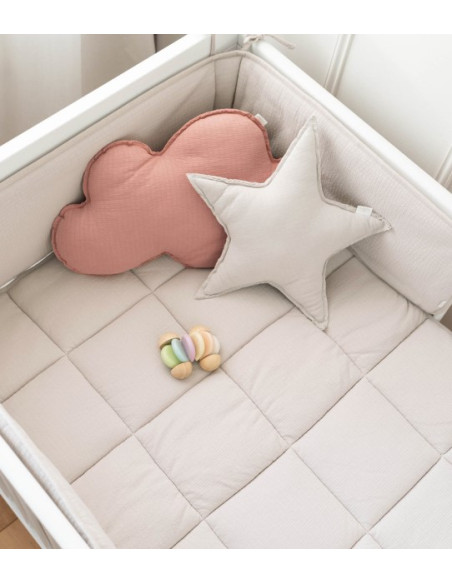 Douillet et rassurant, le tour contribue au confort et à la tranquilité et empêche bébé de se cogner ou se coincer dans les barreaux. Il s'attache facilement et en toute sécurité.