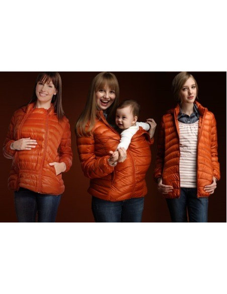 Une veste universelle fournie avec un empiècement de grossesse qui se transforme aussi en empiècement de portage !