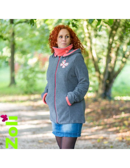 L'achat idéal de la future et jeune maman! Un manteau cintré et féminin avec un insert de portage et un insert de grossesse et une capuche en polaire pour maman incluse.