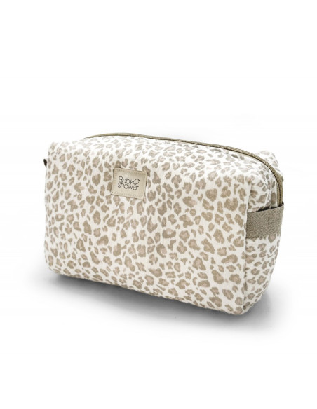 Grande trousse de toilette pour les produits de soins de la peau de bébé. Flexible pour prendre moins de place. Intérieur plastifié blanc et une poche latérale.