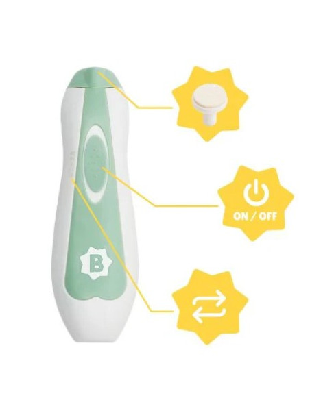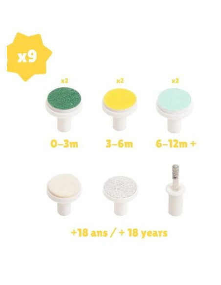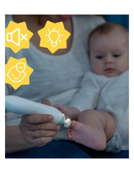 • Sécurité garantie : L'arrêt automatique et les grains fins des embouts assurent un limage sans risque pour votre bébé.