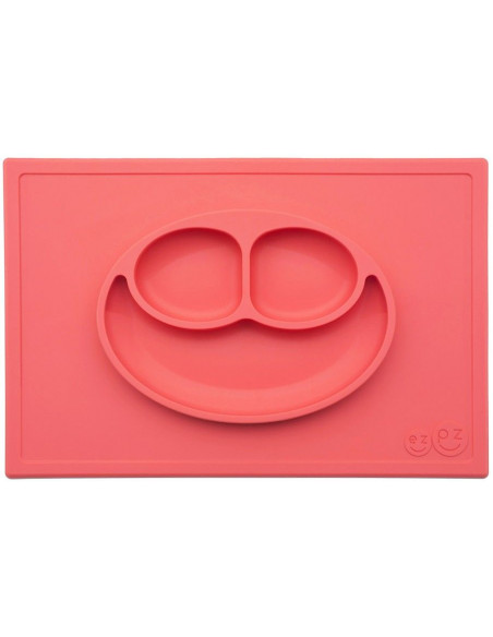 Un set de table et une assiette, tout-en-un, en silicone de grande qualité. Il adhère directement à la table ou à la tablette des chaises hautes, ce qui le rend presque impossible à retirer par des petites mains.