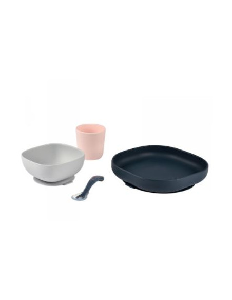 Ce bavoir en silicone avec poche, Little Chums Souris Gris est adaptable à la taille de l’enfant avec 6 positions et peut passer au lave-vaisselle.