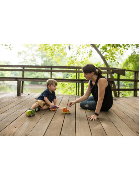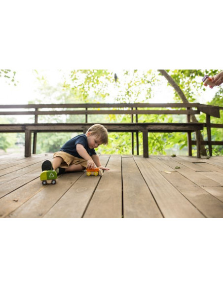 Véhicule en bois durable de la marque Plan Toys, conçu pour les petites mains dès 12 mois.