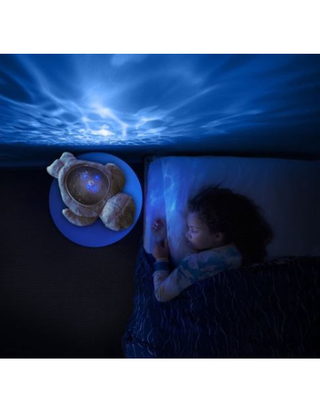 Cette veilleuse musicale avec projecteur lumineux propose 3 intensités lumineuses. Elles permettent de créer l’ambiance parfaite pour aider l'endormissement de votre bébé avec une berceuse, une mélodie marine ou des bruits blancs (vagues, pluie ou battements de cœur intra-utérins). Le volume est réglable. Sons et lumière peuvent être combinés ou utilisés séparément. Elle s’arrête toute seule grâce à son minuteur (musique 15 min – projections 25 min).