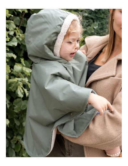 Imperméable, chaud et coupe-vent, le poncho est le manteau pratique et idéal pour voyager en voiture, balader en poussette et dans le porte bébé.